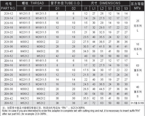 METRIC THREAD BITE TYPE TUBE FITTINGS