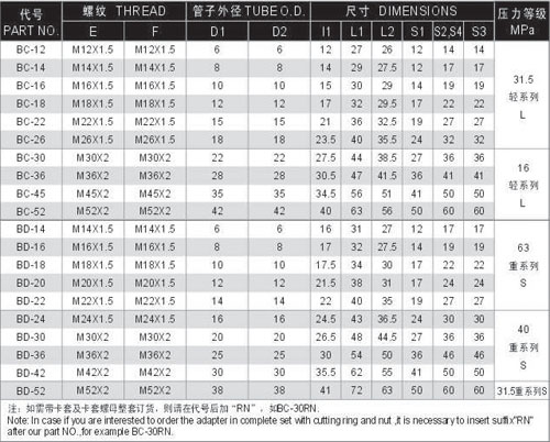METRIC THREAD BITE TYPE TUBE FITTINGS